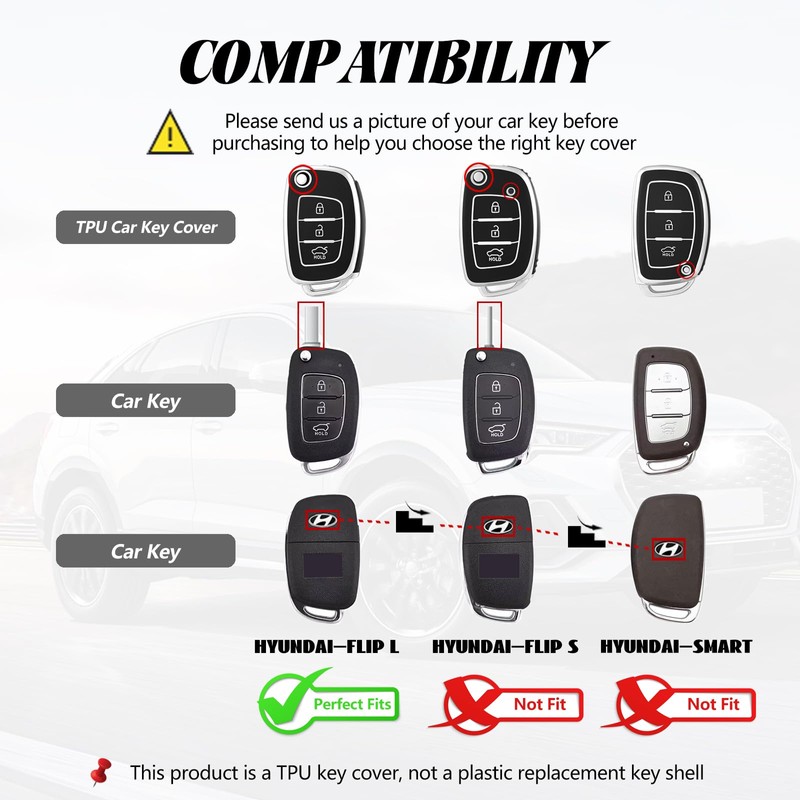- 【Compatibility】Please refer to the 3rd picture before purchasing! If you have any questions please contact us by sending a picture of your car key. The car key cover is compatible with Hyundai i10, i20, i30, i40, ix20, ix25, ix30, ix35, ix45, ix55, Santa Fe, Tucson, Elantra, Accent, Sonata, Coupe, Verna, Reina, Creta, Mistra.