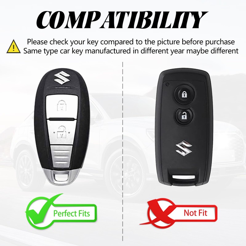 - Compatibility: Please note the 3rd Picture! If you have any questions, please send us a picture of your car key. Key case is compatible with Suzuki Vitara Grand Vitara II SX4 S-Cross Alivio Swift Baleno Jimny Ignis Kizashi Maruti Ciaz Ertiga Samurai Celerio Splash Alto Liana XL7.