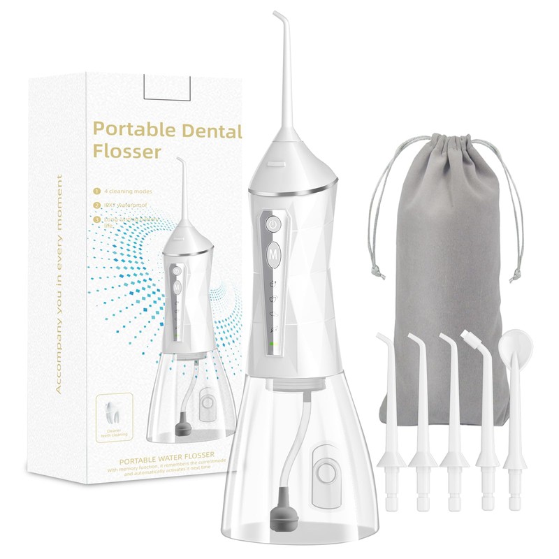 Tooth Flosser, 4 Modes, Portable 320ml Large Tank Water Flosser Oral Cleaner IPX7 Waterproof Cleaning Flosser for Home Travel (White