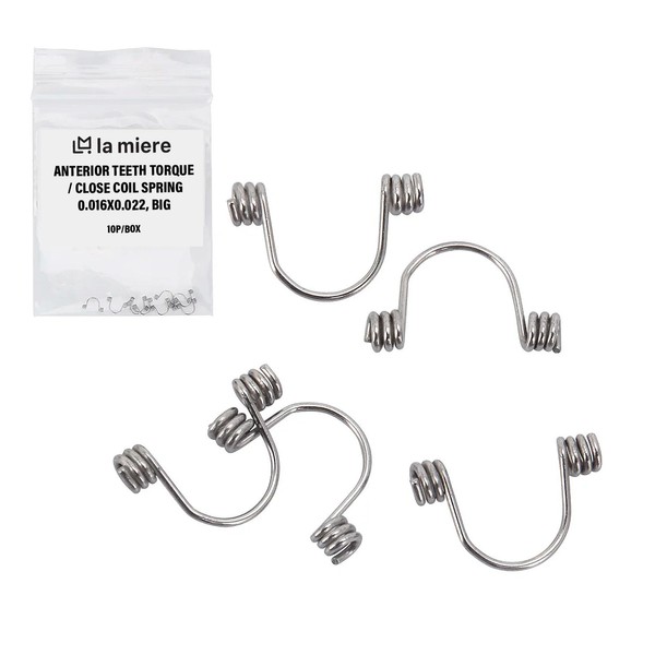 - Application torque spring before the main arch wire with 0.46 mm x 0.64 mm stainless steel wire the torque hole through the main arch wire fixed on both ends of the spring