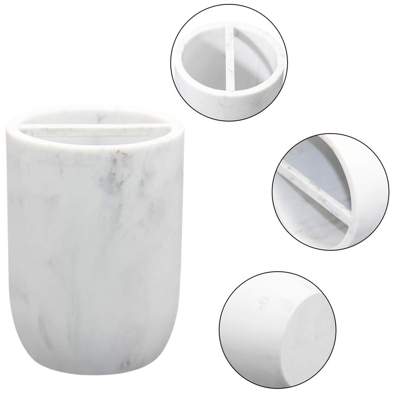 - 【Elegant Toothbrush Holder】➤Crafted from resin, it features a white,marble-like design with slight gray/ black streak in it and streamlined silhouette for a modern feel with a touch of glamour in your master bath or powder room.