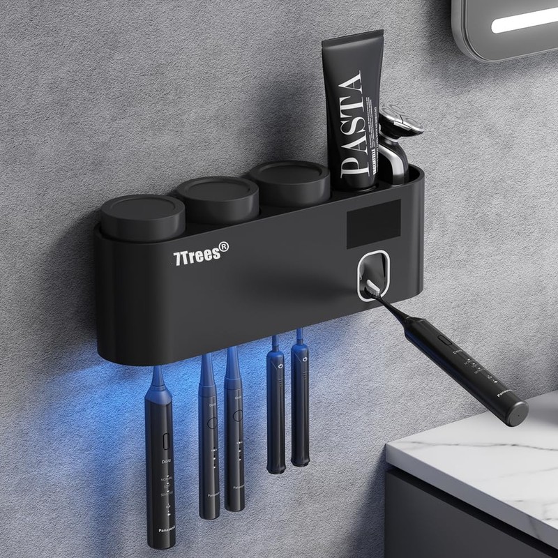 - TOOTHBRUSH Cleaning: Efficiency up to 99.99%, the toothbrush holder guarantees that your family have a clean toothbrush and cup when brushing teeth. It is perfect for bathroom.