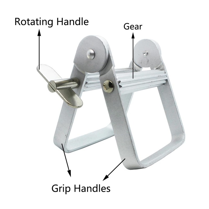- STRONG PRACTICALITY The aluminum alloy wringer features two well-positioned handles for smooth squeezing of toothpaste. The length of the rotating handle is 4.3 cm and provides sufficient length to facilitate the application of force and easy rotation. The handle has a width of 7.3 cm and provides ample space to comfortably fit in most people's hands except for oversized hands.