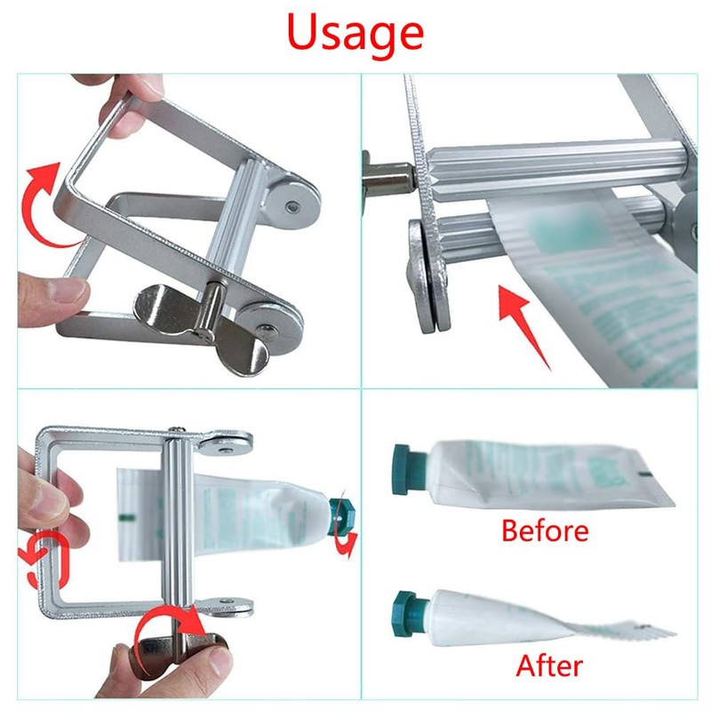 - Application: The toothpaste roller dispenser tool can be used for extruding tubes such as toothpaste, face creams, hand creams, shampoos, shower gels and more. In addition, the aluminium alloy wringer can be used to extrude soft metal pipes such as paint tubes and glue tubes.