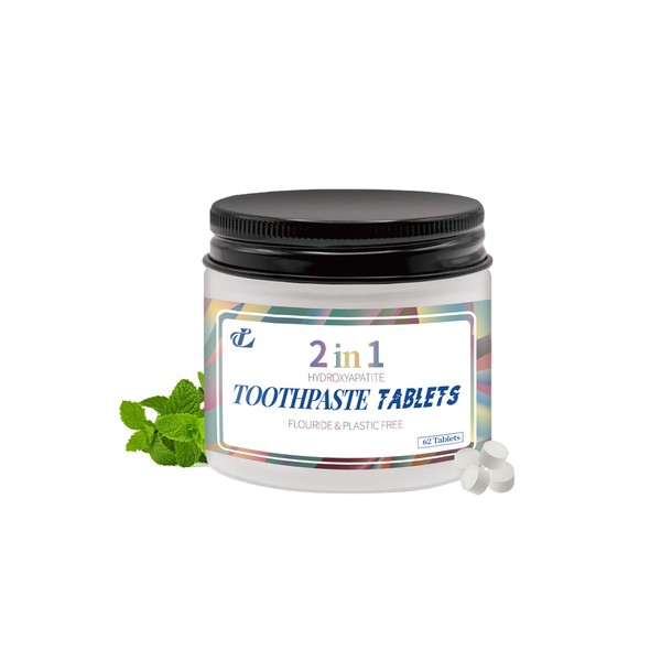 Toothpaste Tablets with Nano Hydroxyapatite – 2-in-1 Chewable Mint Tablets for Fresh Breath & Daily Cleaning, Fluoride-Free, Travel Friendly Jar, 62 Count (1)