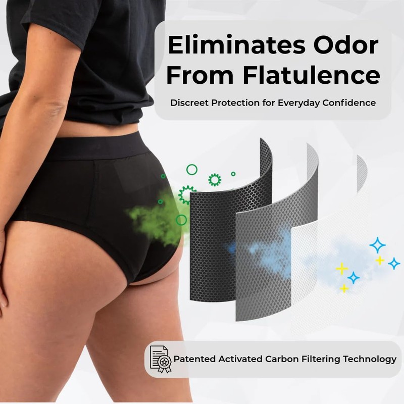 • Scientifically Designed for Maximum Effectiveness – The 3 mm thick activated carbon panel, extending from front to back, effectively traps and neutralizes gas, offering unparalleled relief for those with IBS, IBD, Crohn's, and colitis.