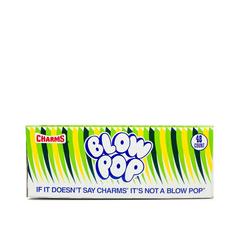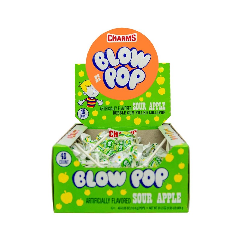 - 48-Count box of Sour Apple Flavor Charms Blow Pops
