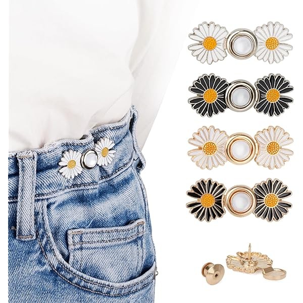 TOOVREN Pant Waist Tightener, Detachable Jean Buttons for Loose Jeans, No Sew and No Tools Button Pins for Jeans, Adjustable Jean Buttons Pins, Daisy Flower Instant Pants Button Tightener 4 Sets