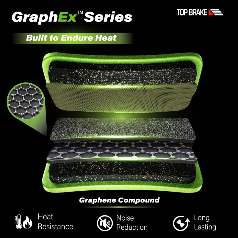 - GraphEx-Technologie – entwickelt mit unserer proprietären Graphenverbindung. Liefert unübertroffene Bremskraft und konsistente Hochtemperaturleistung ohne Kompromisse.