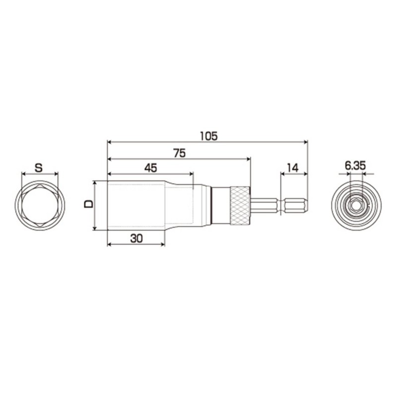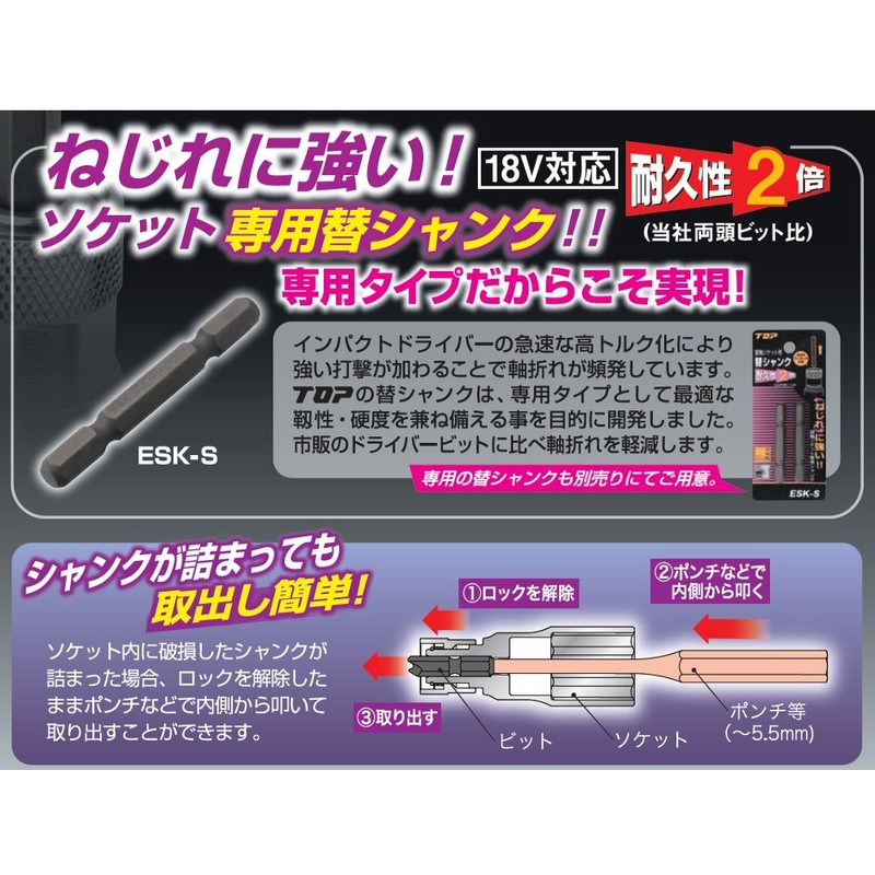 TOP ESK-19 Replacement Shaft Socket for Electric Drills, 0.7 inch (19 mm), Compatible with 18 V, Shank Replaceable Bit, Civil Engineering, Construction Tools, Made in Japan
