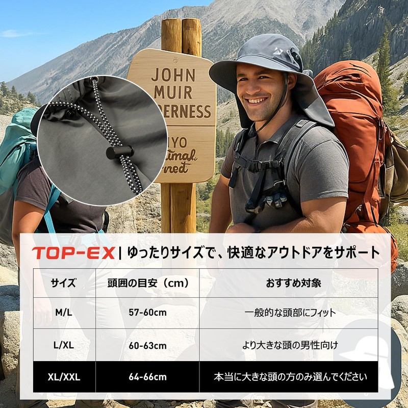 TOP-EX Safari Hat, Adventure Hat, Foldable, Boonie Hat, Stylish, Fishing Hat, Mesh, Military Hat, Foldable, Sun Hat, Hat, 94599_Black