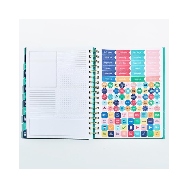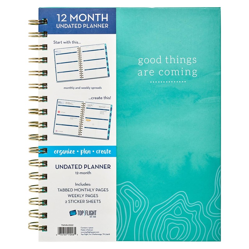 Top Flight Good Things Spiral 12-Month Undated Planner, 73 Pages, Printed Hard Cover, Tabbed Dividers, Stickers 9 x 7 inches (4513018)