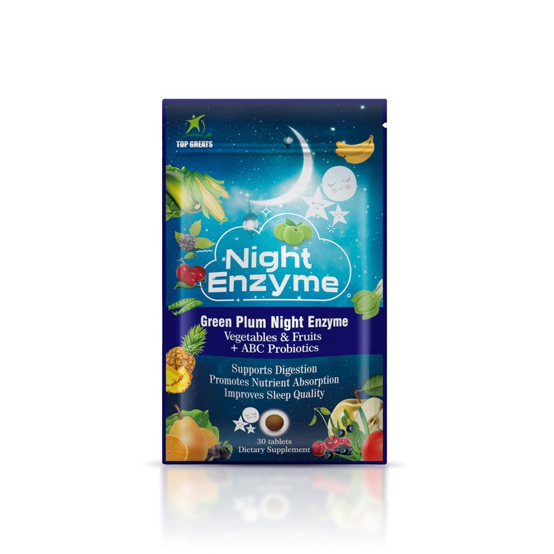 TOP GREATS Night Enzyme, Daily Multi Digestive Enzymes, Green Plum Fruit and Vegetables with Probiotics, Relief Bloating, Better Sleep Quality, for Men and Women, Promote Digestive Health- 60 Tablets
