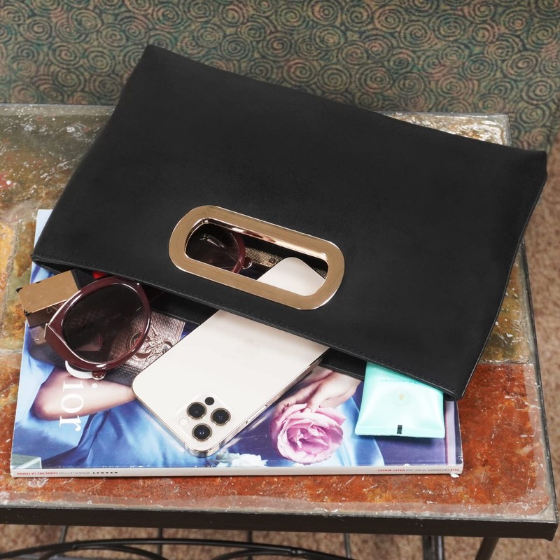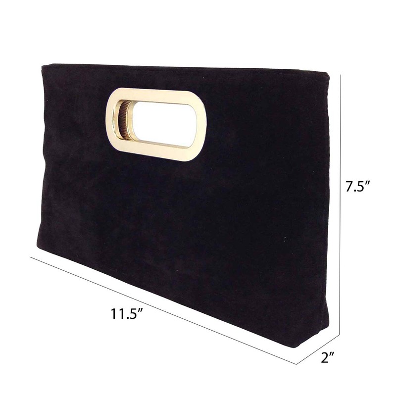 Top Handle Faux Suede Clutch, Black Large