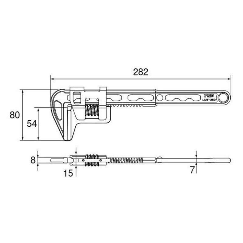 Top Industry (TOP) Light Motor Wrench Pipe Wrench Mouth Opening 0-70 mm 15.5 oz (440 g) Body/Jaw Forged Water Faucet Plumbing Work LMW-280 Tsubame Sanjo Made in Japan *Sealed Packaging