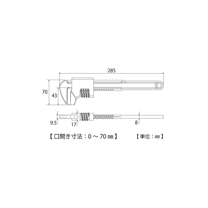 Top Industry (TOP) Motor Wrench Faucet Wrench Opening 0 - 70 mm Main Unit, Jaw, Non-Heat Treatment, Plated, Soft Nut, Water and Gas Piping Work MW-280, Tsubamesanjo, Made in Japan *Sealed Packaging