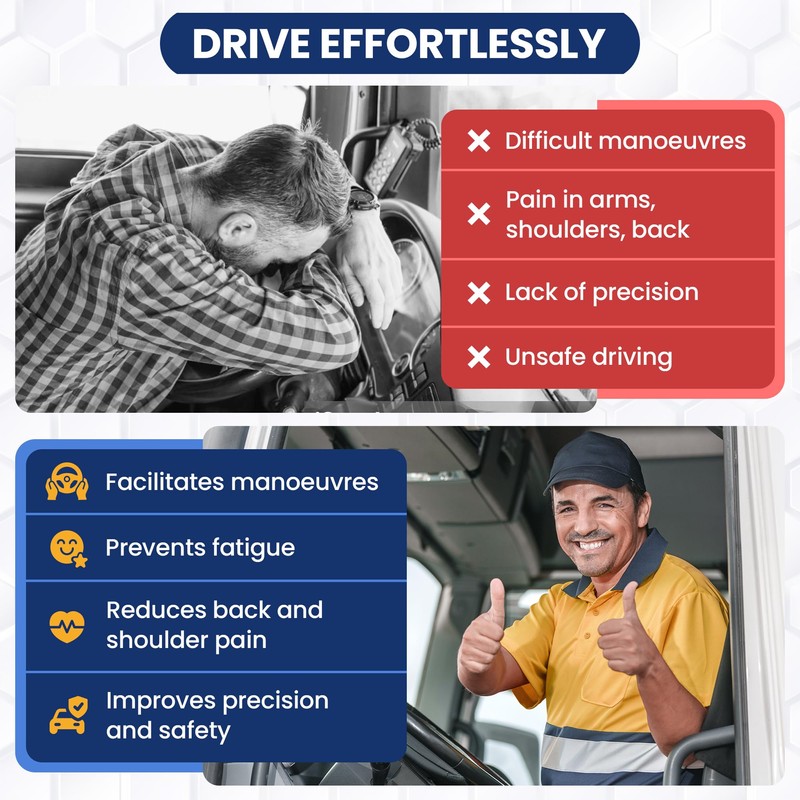 - IDEAL FOR truck drivers, delivery drivers, chauffeurs and anyone who drives a thick steering wheel (sport steering wheels, vans, semi-trailers, etc.). Don't take the wheel without this driving aid.