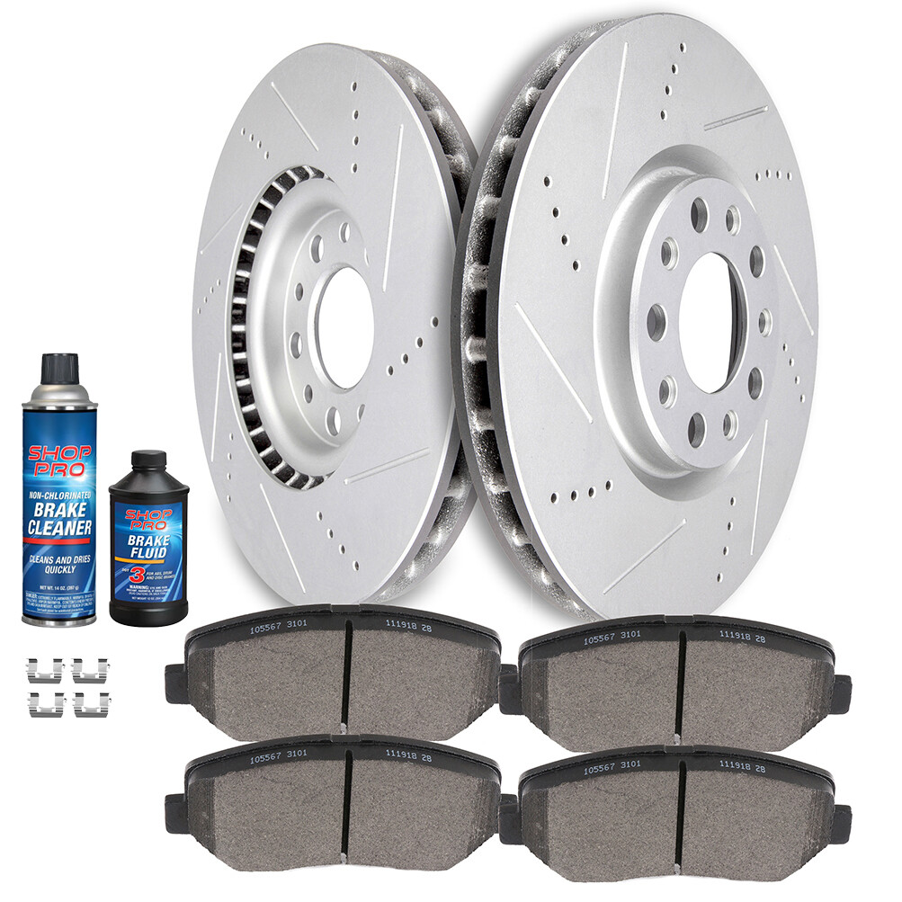 Fits Dodge Dart 2013 2014 - 2016 Front Drilled Slotted Brake Rotors Ceramic Pads