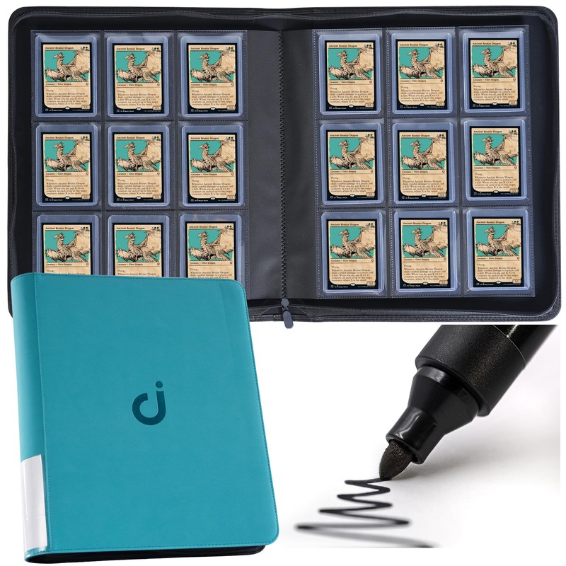 Top Loader Binder, Holds 288 Top Loaders - 9-Pocket Toploader Binder for 3" x 4" Rigid Card Holders for Trading Cards or Sports Cards, Model A - Classic Turquoise