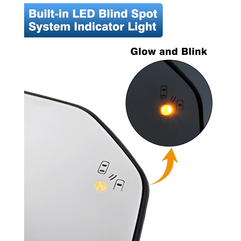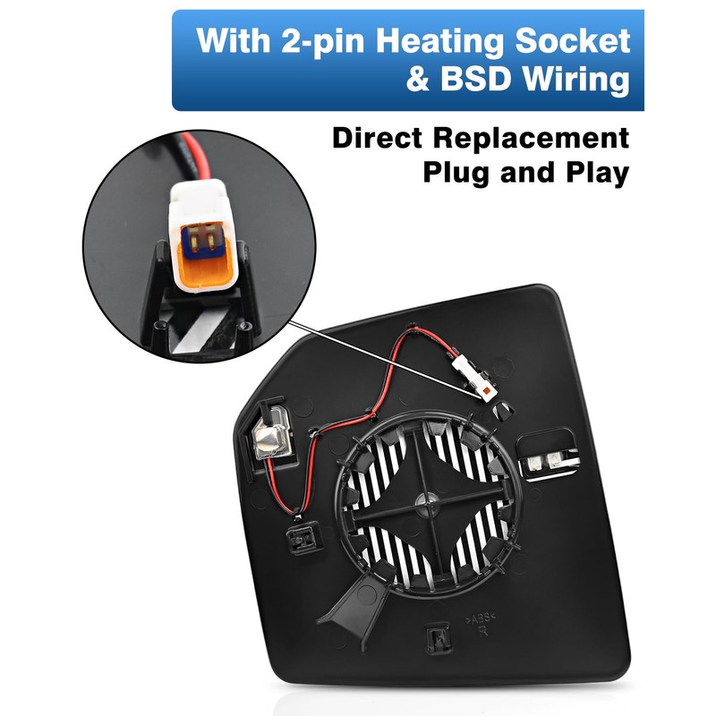 - BSD Light: Passenger side replacement mirror for Ford F150 with Blind Spot Detection (BSD) system indicator light. The built-in LED light will illuminate when the BSD system is active.