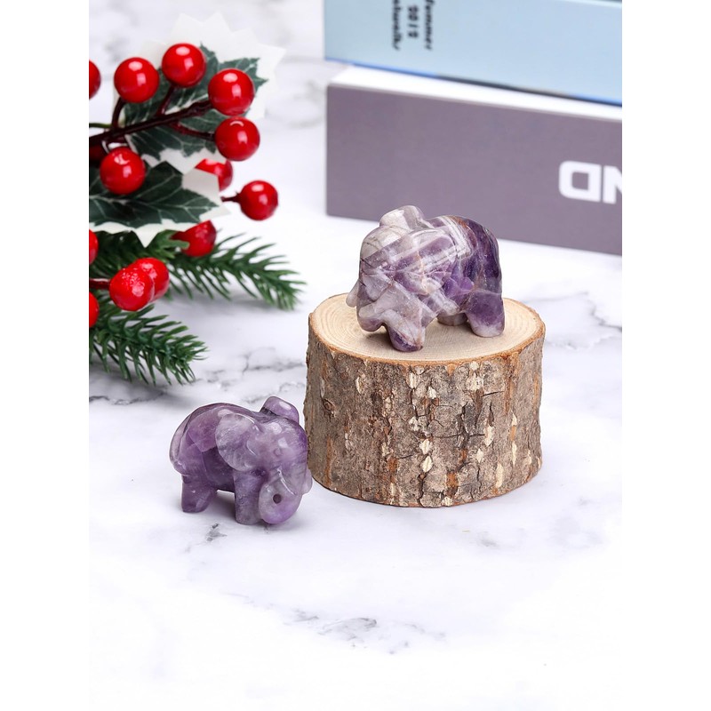 Top Plaza 1.6" Amethyst Crystal Elephant Statue Figurine Polished Carved Healing Gemstones Purple Elephant Sculpture Home Desk Decor Good Luck Meditation Crystal Gifts for Women Men