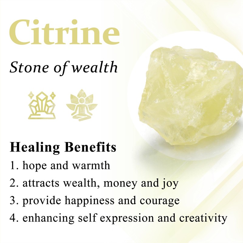 - HEALING CRYSTAL STONE: Known as the stone of wealth, Citrine is one of the most precious and rare crystals in the crystal. Its energy strongly corresponds to wealth, so it can bring wealth. Citrine corresponds to the navel wheel in 7 chakra, which has the effect of relieving tension and helping the digestive system such as stomach.