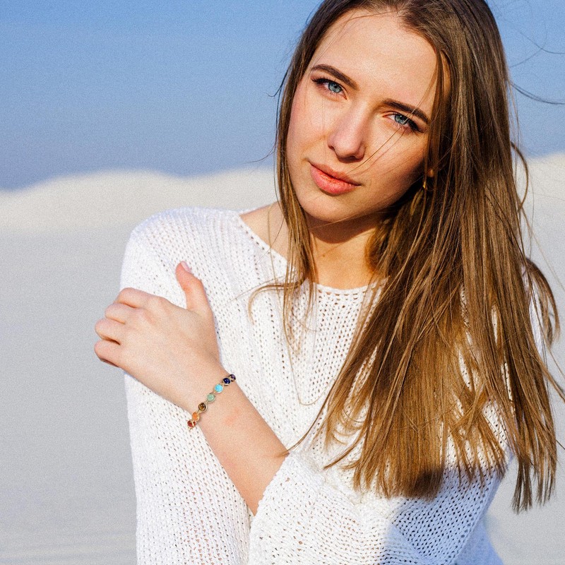 - [ 14K GOLD ANKLE JEWELRY ] 14K gold plating ankle jewelry with chakra stone beads, adjustable design, suitable for most women to wear. Show your elegance between your hands, and have the effect of quartz reiki healing at the same time.