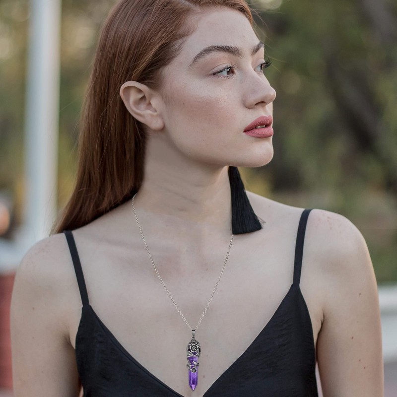 - Material: Natural Amethyst + Copper/Stainless Steel Chain
