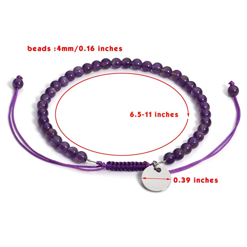 - Material: Amethyst/Rose Quartz & Copper & Rope; Bracelet Length: 6.5-11 inches, Stone Size: 4mm, Silver Plate Size: 10mm.