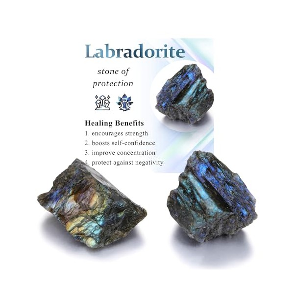 - HEALING CRYSTAL STONE: Labradorite is the most powerful protector of the mineral kingdom, creating a shielding force throughout the aura and strengthening natural energies from within. Psychologically, people think that labradorite can reduce the fear and insecurity, as well as the psychological shadow left by the disappointing things of the past. Moreover, it is said to strengthen people's trust in themselves and to reduce the constraints of others.