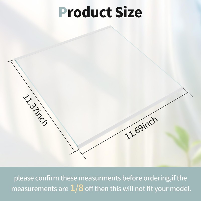 - Dimension: W11130202 freezer glass shelf dimension is 11.69 inches X 11.37 inches. Make sure your freezer shelf size matches it. It fits on the top of the freezer side of Whirlpool refrigerators. Not fit W11130203