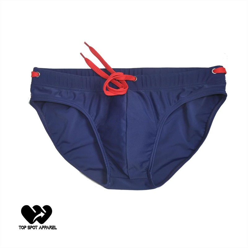 Top Spot Apparel Men's Micro Low-Rise Swim Briefs, Solid Color (L, Navy Blue)