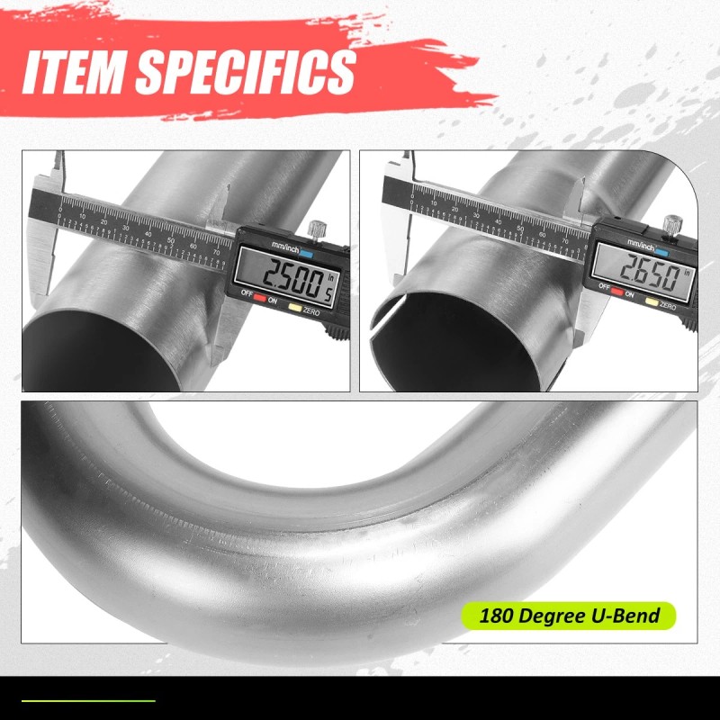 Top Street King 2x 2.5"OD Mild Steel DIY Custom Exhaust Tube Piping 180 Degree U-Bend Pipes
