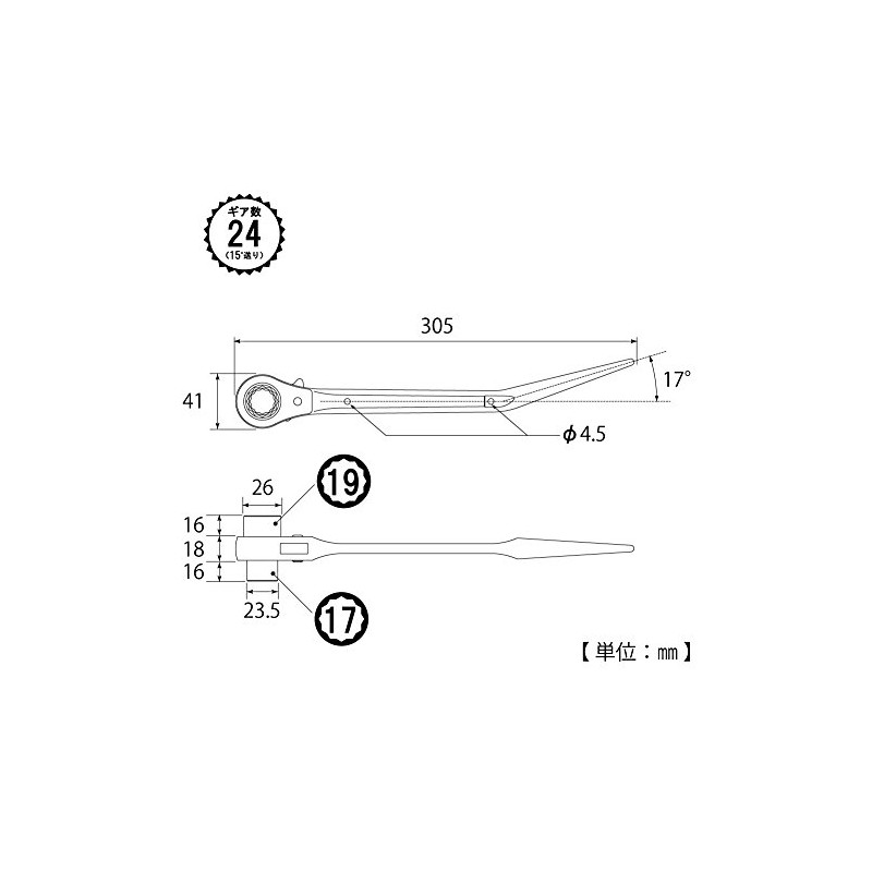 - Socket length: 17 side 16 mm 19 side 16 mm 16 mm