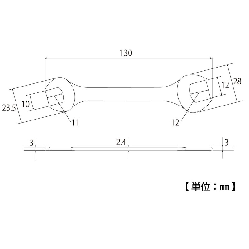 Ultra-thin spanner with only 0.1 inch (3 mm). Ideal for low-profile nuts such as casters Nominal Size: 0.4 x 0.5 inches (10 x 12 mm); Package Size: Length: 5.1 inches (130 mm); Width: 1.1 inches (28 mm); Height: 0.1 inches (3