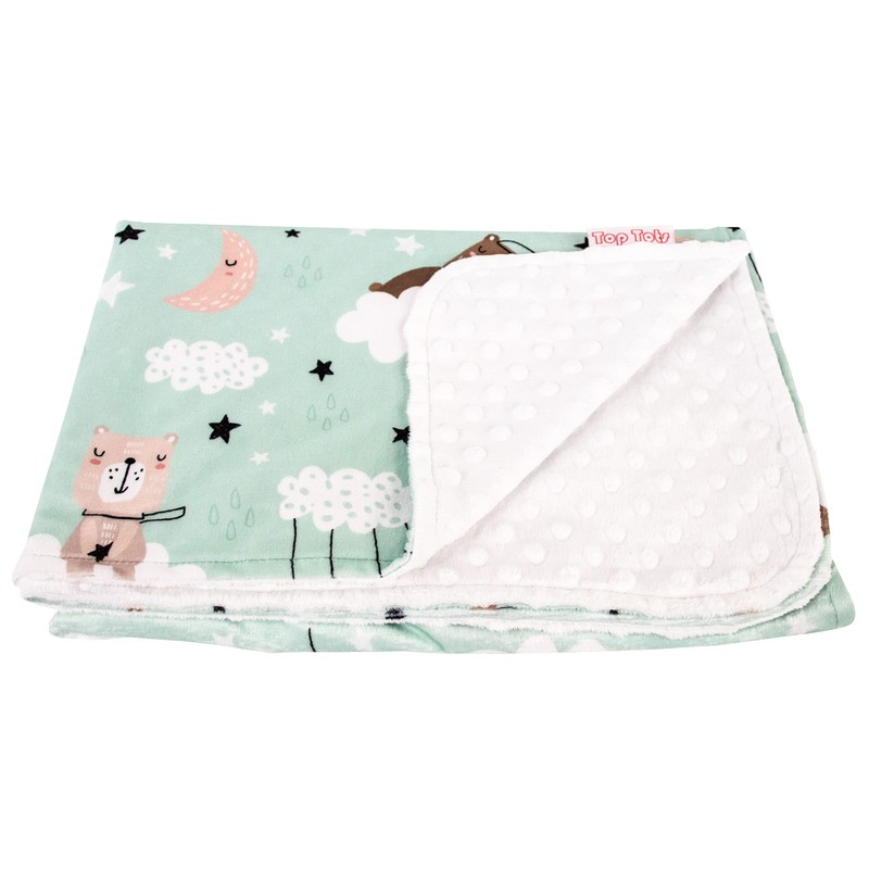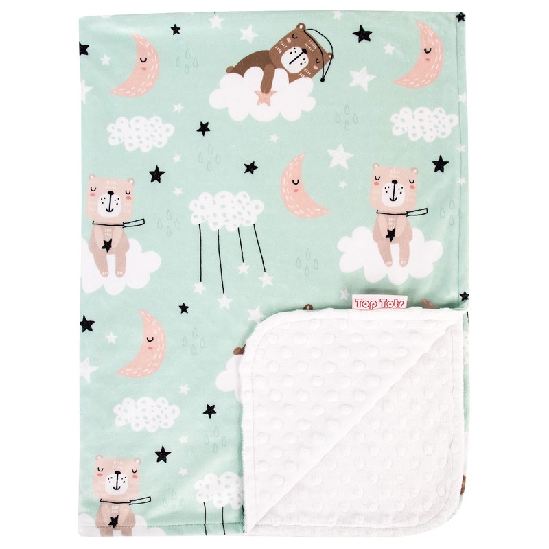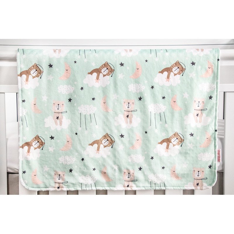 Top Tots Deluxe Minky Baby Blanket - Sleeping Bears on Clouds, 40 x 29 Inch White