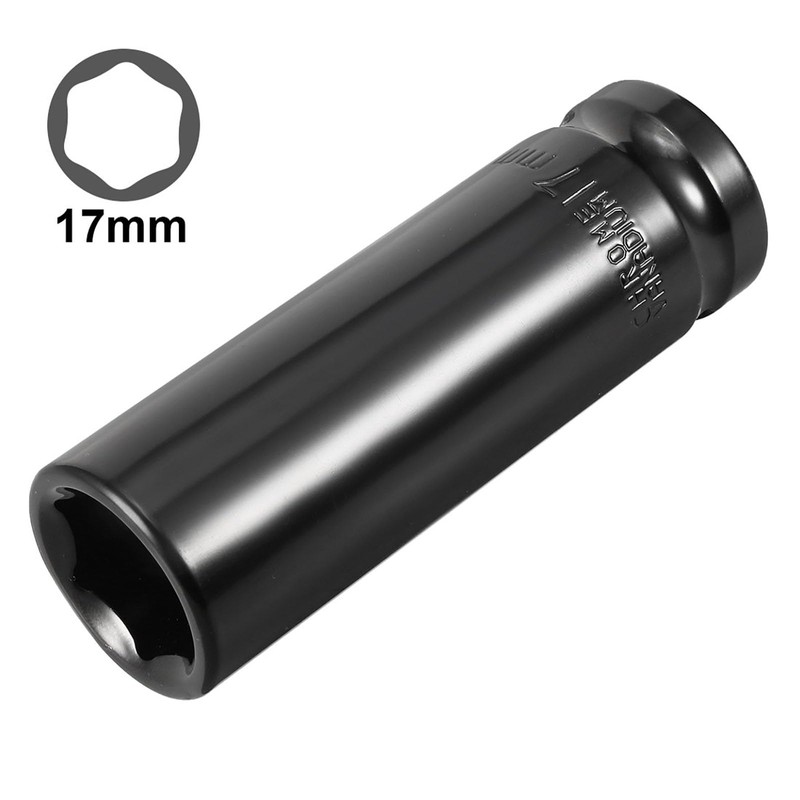 - Size & Package: 1/2 inch square drive, 17mm 6-point socket, 78mm/3.07 inch total length. Package content: 1 x 6-Point Impact Sockets.