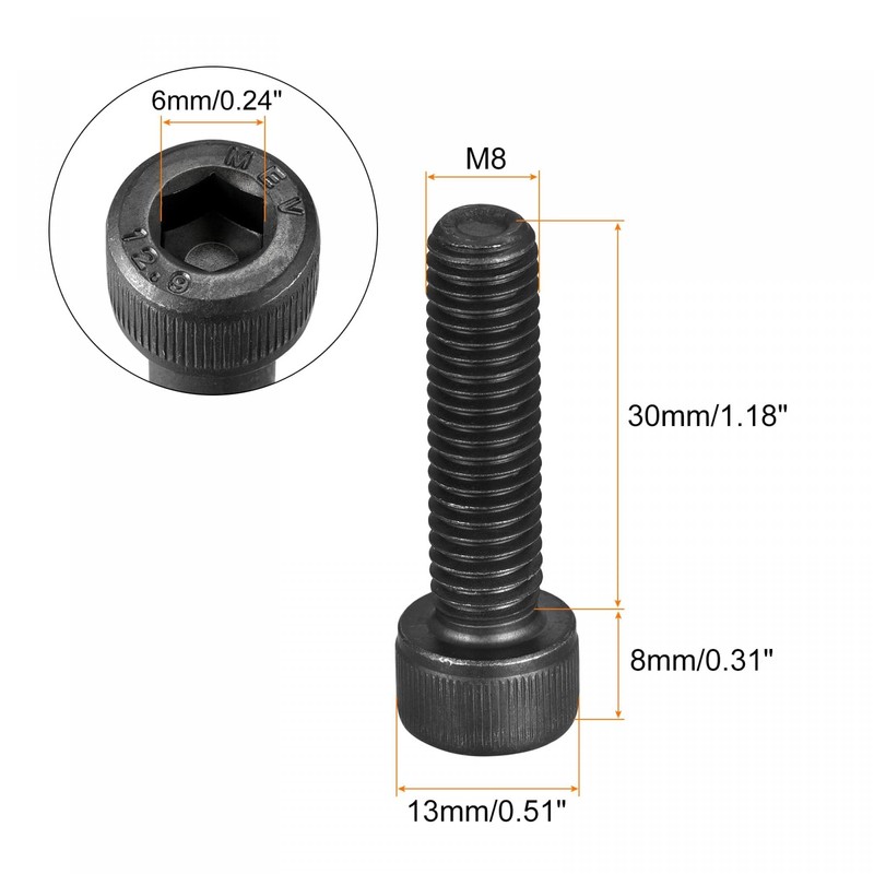 - 【Size & Package】Size: M8 x 30mm; Thread Dia.:8mm; Thread Length: 30mm. Package Including: 10 x Socket Head Cap Screws.