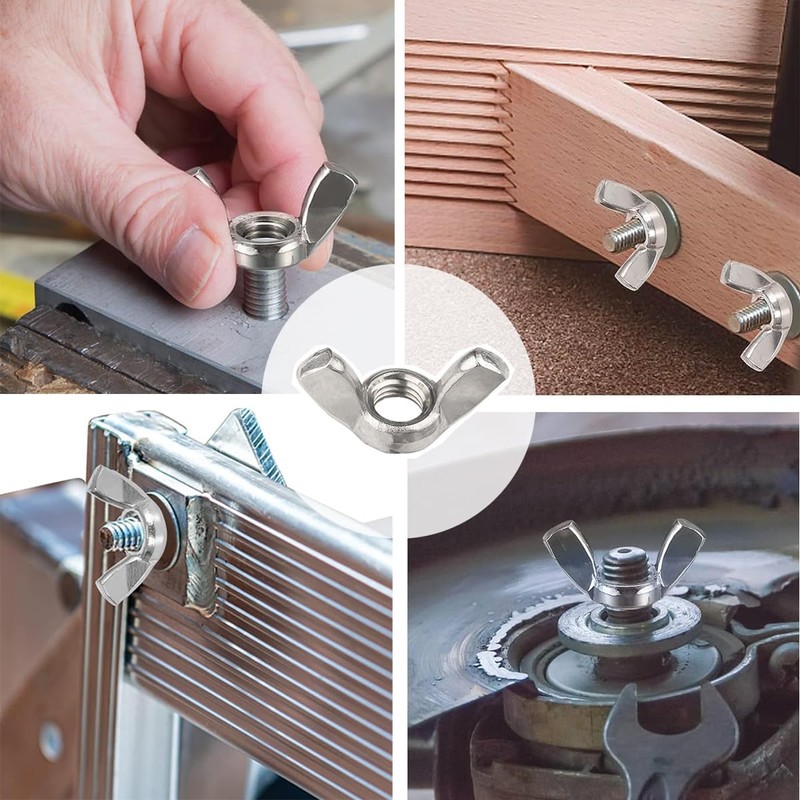 • 【Easy to Use】Designed for convenience, these wing nuts are perfect for applications that require frequent adjustments or disassembly. The smooth finish is gentle on hands, with no sharp edges or burrs, and rust-resistant properties keep them looking and functioning like new. Simply twist by hand—no tools needed.