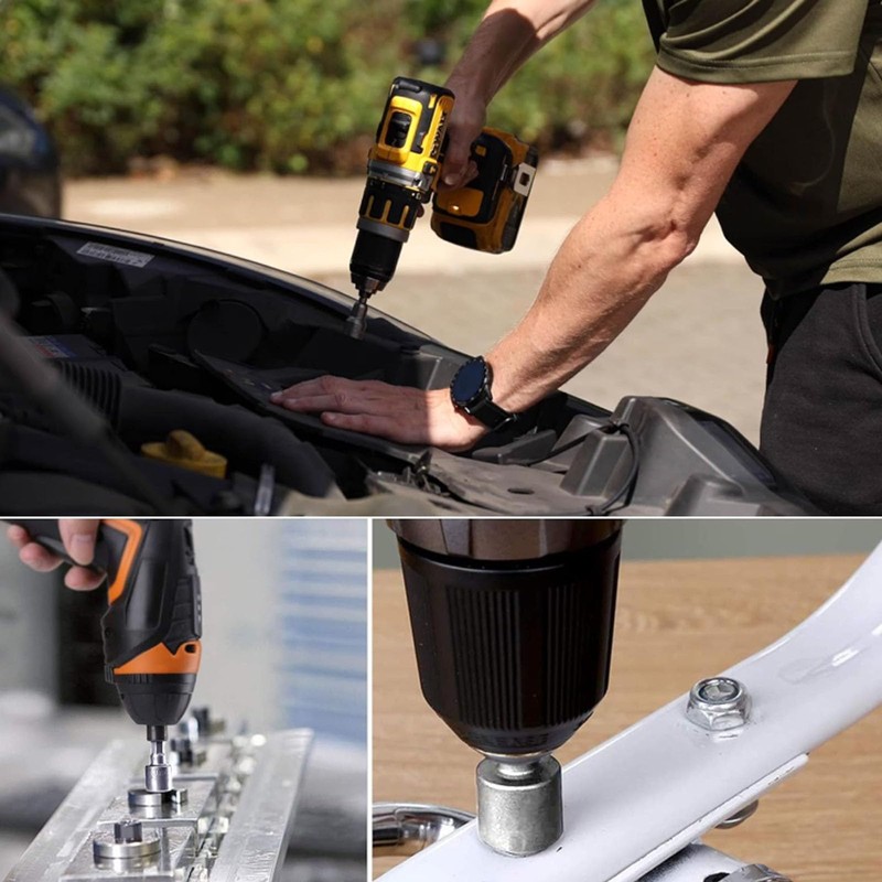 Heavy duty magnetic nut setter driver ensures secure grip, allows for convenient one-handed operation and prevents accidental detachment. Laser markings indicate sizes for easy identification, ideal for beginners.