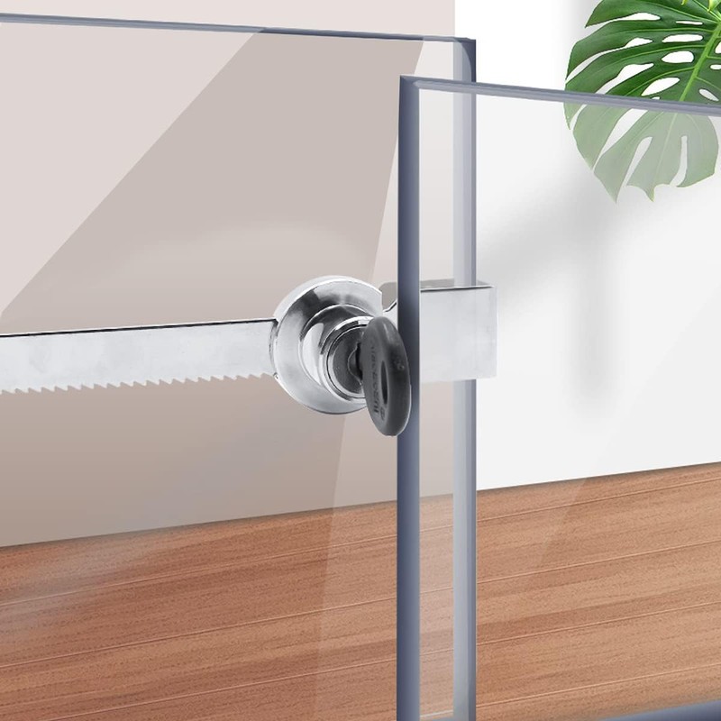 - 【Easy Installation for Quick Use】: Installation of this glass lock will not damage the glass and does not need to be punched. Designed for quick and tool-free installation, simply slide the lock into position and tighten. Ideal for drawers, sliding glass doors, cabinets, and display cases in various settings.