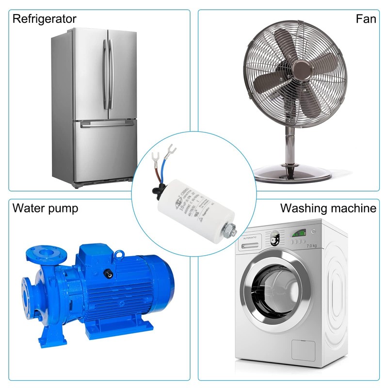 - 【Versatile Application】Tailored for single-phase motors in a 50Hz/60Hz AC electric power system, the CBB60 capacitor finds widespread use. From air compressors, water pumps, pressure washers, and air conditioners to washing machines, motors, generators, HVAC systems, fans, drills, splitters, saws, grinders, and beyond, it ensures optimal functionality.