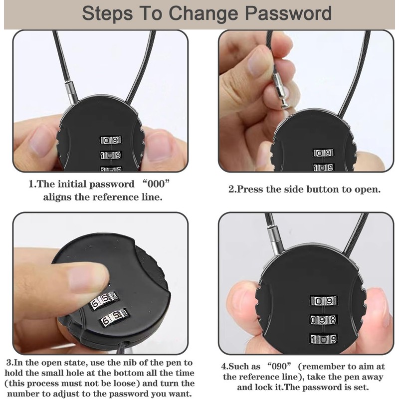 - 【Widely Applicable】This combination lock is small and lightweight, it can be used as a bin lock, luggage Lock, handbag lock, file cabinet lock, motorcycle lock, bike lock cable, motorcycle helmet lock, etc. It is an ideal choice for protecting personal belongings during travel, commuting, fitness and daily use.