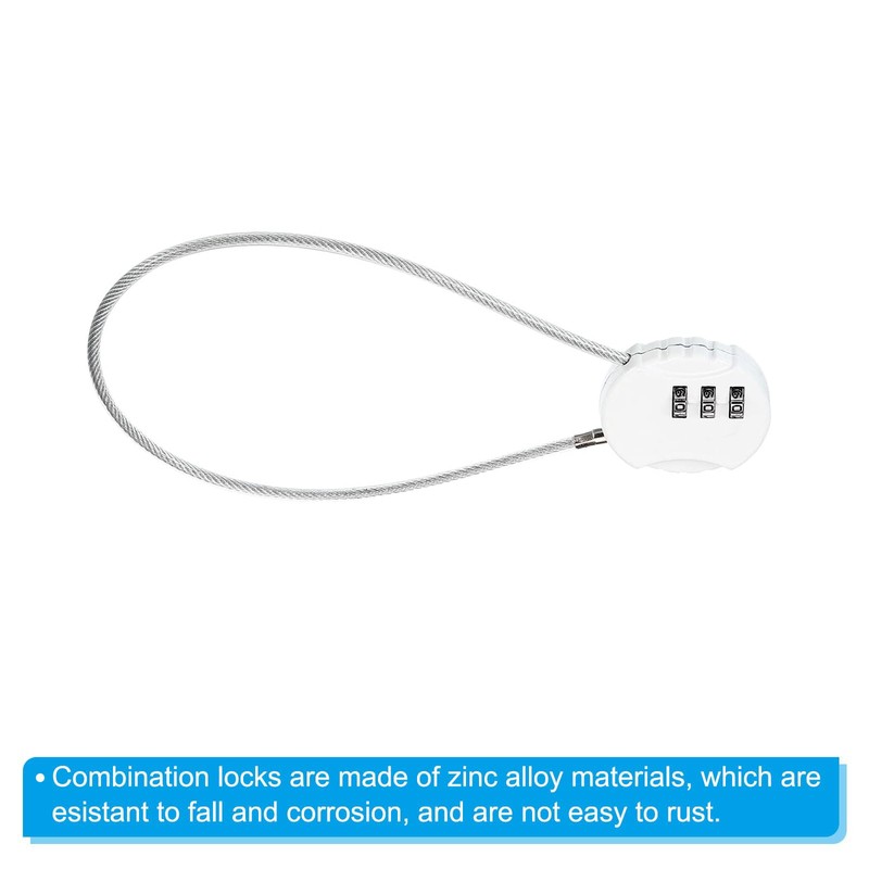 - 【Specification】Color: White; Material: Zinc Alloy, Steel; Steel Rope Stretched Length: 30cm / 12 Inch; Steel Rope Diameter: 3mm / 0.12 inch; Lock Height: 40mm / 1.57 inch. Package included: 1Pcs Combination Lock.