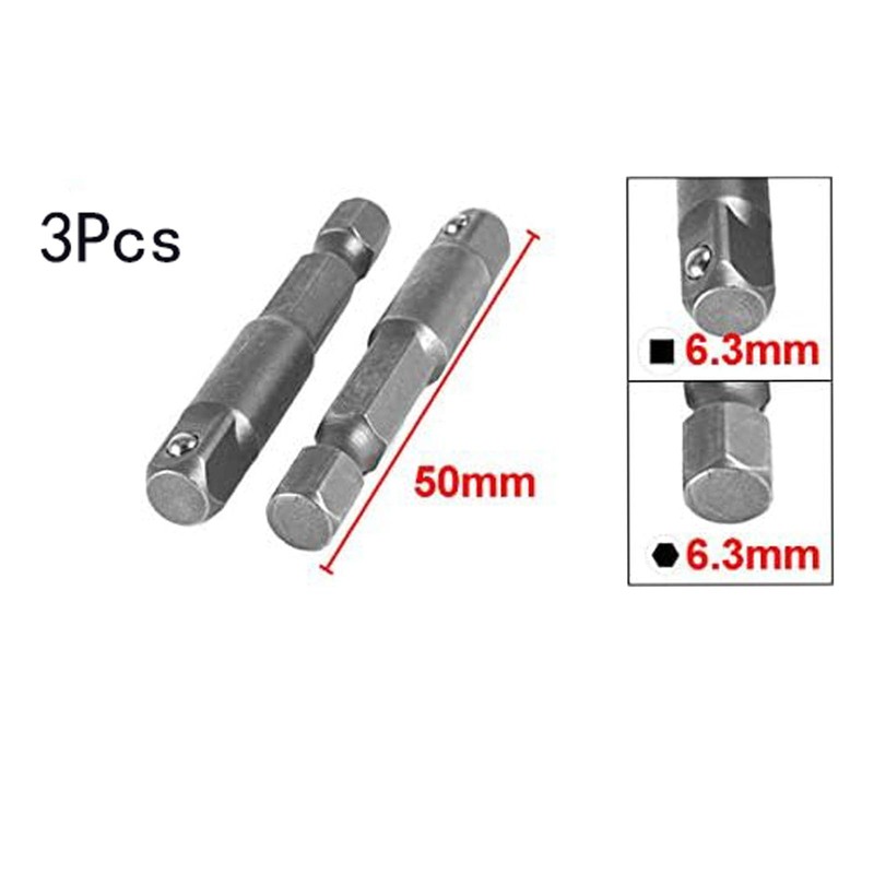 - [Size & Package] Hex Socket Size : 6.3mm / 1/4";Hex Shank Size : 6.3mm/ 1/4"; Overall Size : 6.5 x 50mm/ 0.25" x 2" (D*L);Color : Gray. Package including: 3 x Socket Adapter.