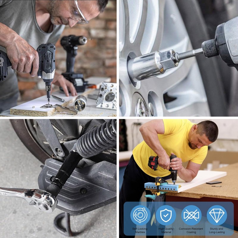 - [Secure Attachment] Equipped with a spring-loaded ball bearing on the head, ensuring a secure fit and added versatility, regardless of the tool you’re using.