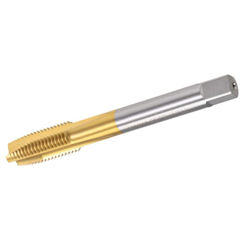 TOP-VIGOR M10 x 1,25 mm Spiralspitzen-Gewindebohrer, Gewindefräsbohrer mit H2-Toleranz, 3 Flöten, geschliffenes Gewinde, HSS Titanbeschichtet (Rundschaft mit Vierkantend)