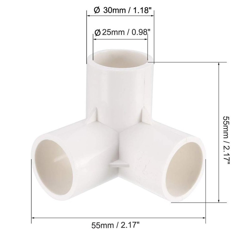 TOP-VIGOR PVC Pipe Fitting 25mm 3 Way Pipe Fitting T Slide Corner Connector A...