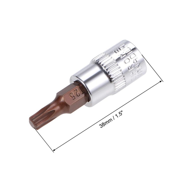 • SIZE & PACKAGING 1/4 inch socket, T25 (T25mm) hex bit, 38mm total length. Package includes: 5 x hex bit sockets