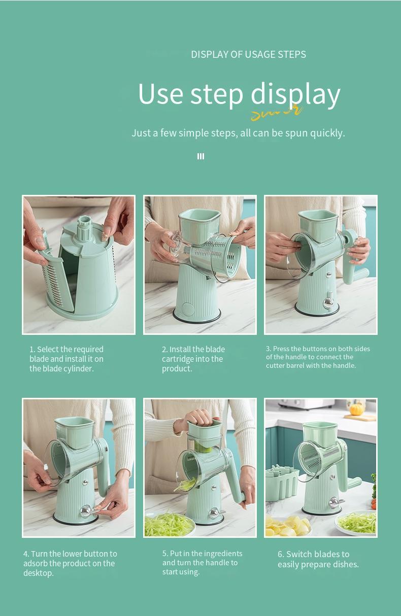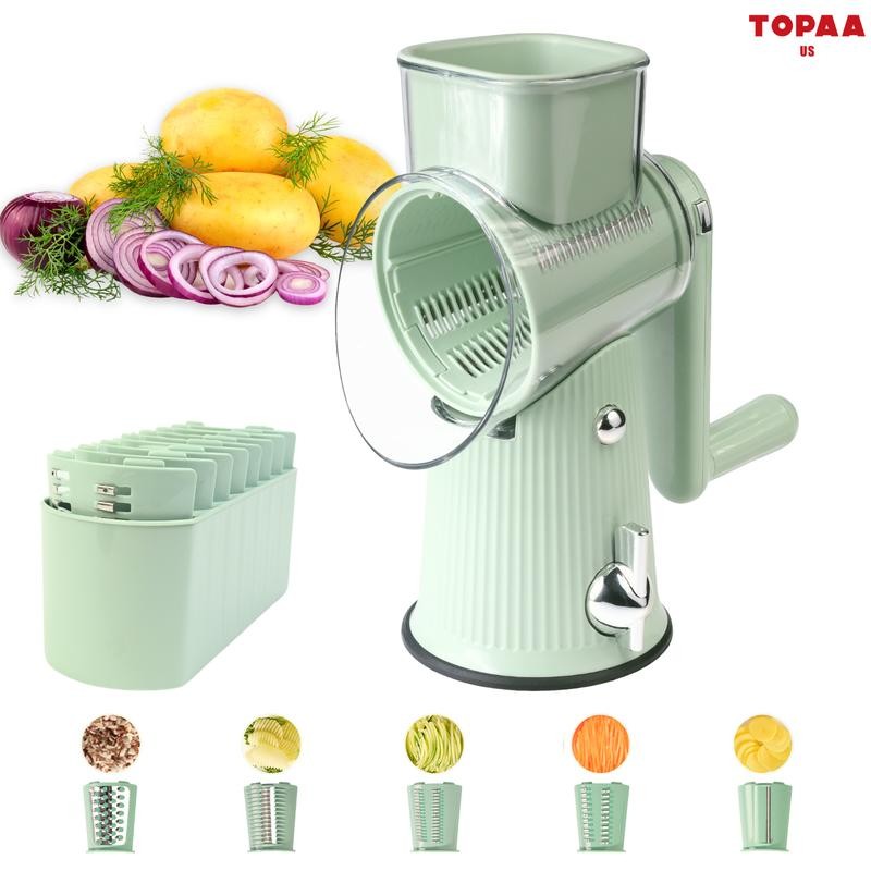 TOPAA 5 in 1 Manual Vegetable Chopper with Replaceable Blades, Multifunctional Sliceer, Kitchen Utensils & Green Gadgets Cheese Grater Round Slicer - Color: Green